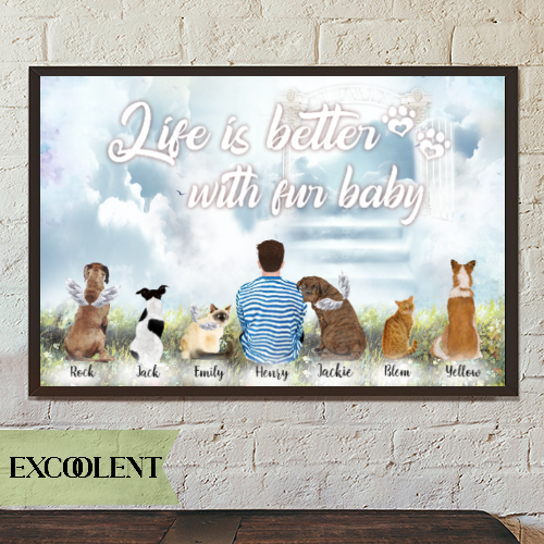 Personalized Canvas/Poster Prints for Friends/Pet Lovers - Best Gift Personalized With Dogs/Cats breed & Names - Dad with Dogs/Cats - Life is better with fur babies - (Up to 6 Pets/Dogs/Cats)