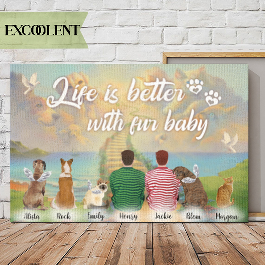 Custom Canvas Prints For Friends/Pet Lovers - Amazing Gift Personalized With Dogs/Cats Breed & Names -Mom With Dogs/Cats - Life is better with fur babies - (Up To 6 Pets/Dogs/Cats)