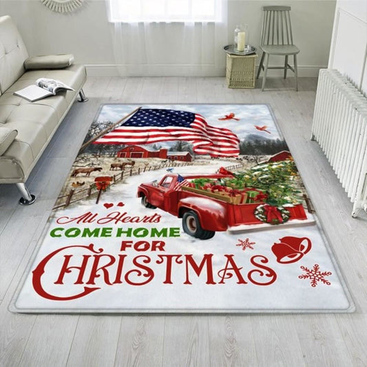 Christmas Rugs, Red Truck American Rug All Hearts Come Home For Christmas, Christmas Floor Mats