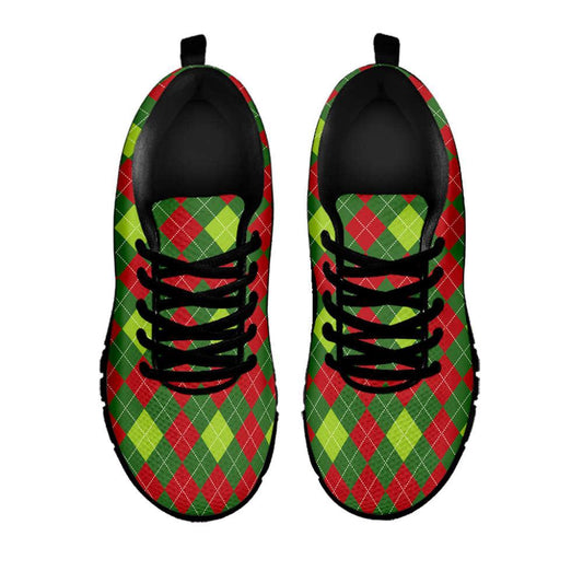 Green And Red Christmas Argyle Print Shoes Sneaker, Christmas Shoes, Chistmas Sneaker, Christmas Running Shoes