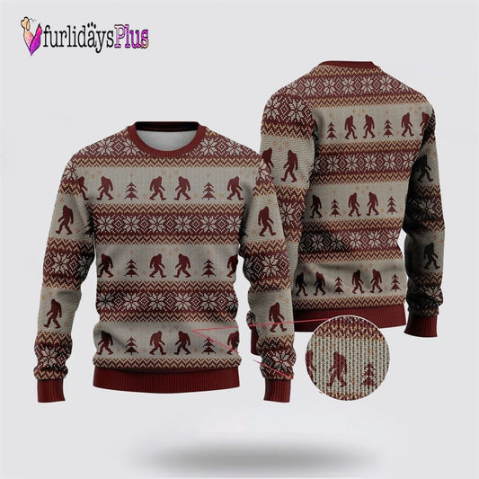 Bigfoot Red And Gray Pattern Ugly Christmas Sweater, Best Gift For Christmas