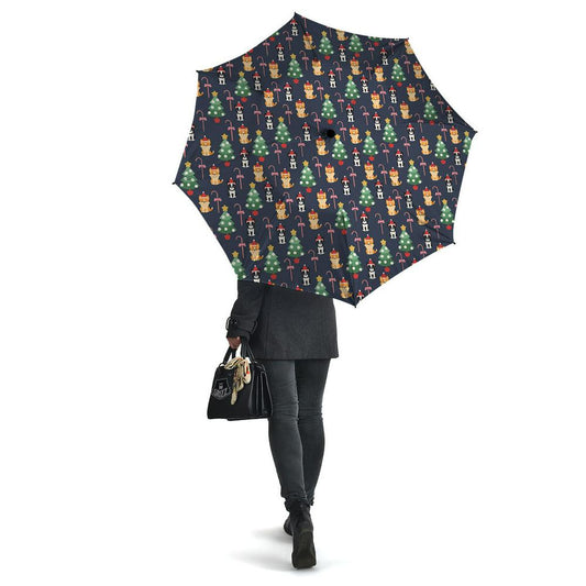 Boston Terrier And Corgi Christmas Print Umbrella, Christmas Umbrella, Xmas Umbrella