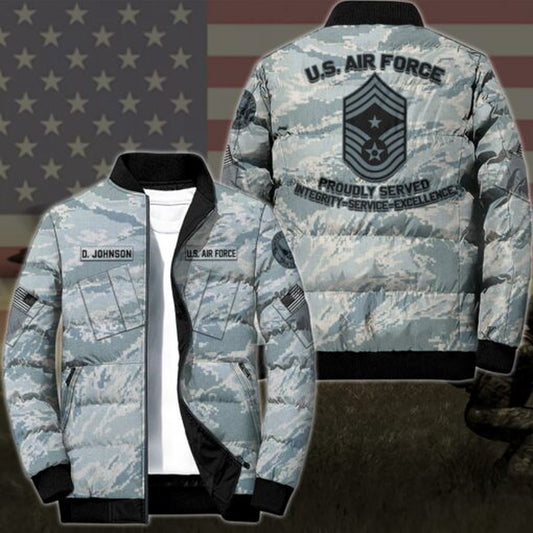 Air Force Puffer Jacket, US Air Force Puffer Jacket Personalized Your Name And Rank, Camo Puffer Jacket