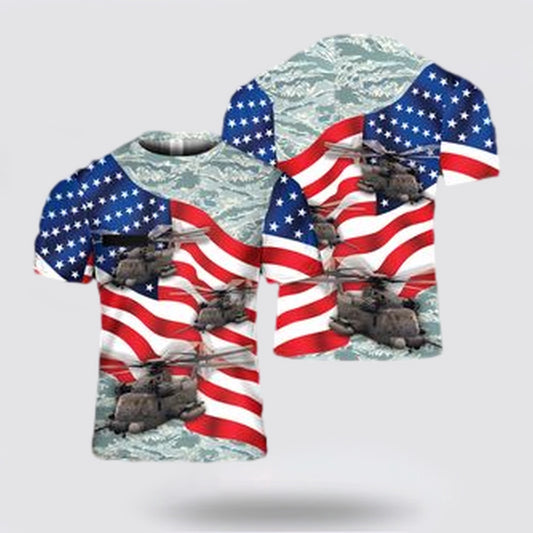 US Air Force T Shirt, Custom Name US Air Force Sikorsky MH-53 Pave Low AOP 3D T Shirt