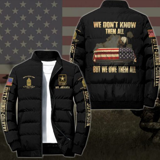 Army Puffer Jacket, US Army Puffer Jacket Custom Your Name And Rank, We Don't Know Them All But We Owe Them All