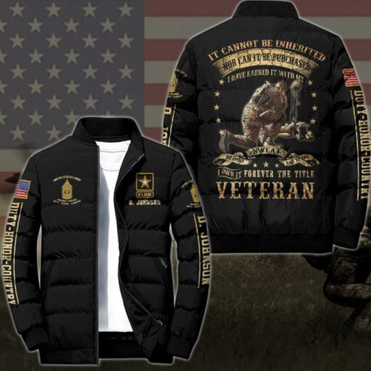 Army Puffer Jacket, US Army I Own It Forever The Title Veteran Puffer Jacket Custom Your Name And Rank