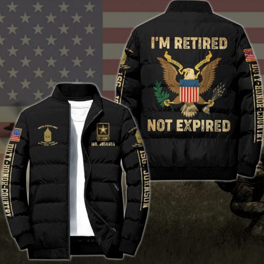 Army Puffer Jacket, US Army Puffer Jacket Custom Your Name And Rank , I'm Retired Not Expired, Military Puffer Jacket