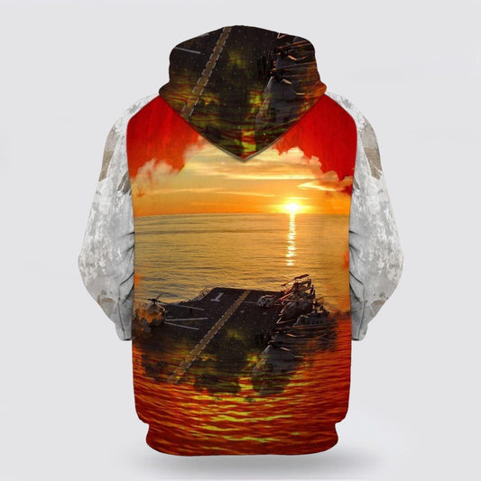 Us Navy Hoodie, Sun Set On Navy Ship All Over Print Hoodie