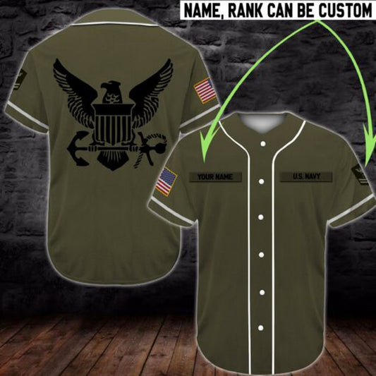 Veteran Baseball Jersey, Navy Baseball Shirt Custom Rank And Name Jersey Shirt