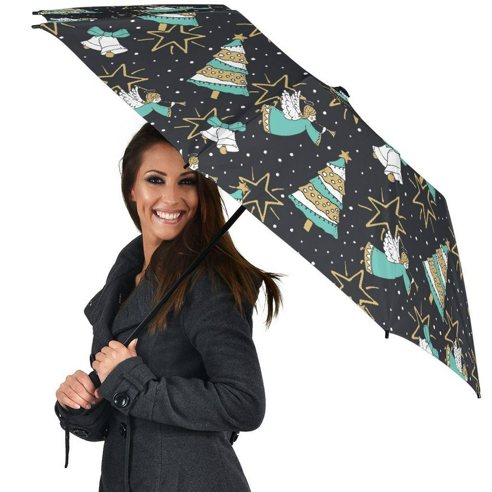 Angel Christmas Print Pattern Automatic Foldable Umbrella, Christmas Umbrella, Xmas Umbrella – Frulidays Plus This umbrella is designed to keep you dry and stylish in any weather. With a sturdy frame and durable fabric, it provides excellent protection from rain and wind. Its compact design makes it easy to carry, and the ergonomic handle ensures a comfortable grip, perfect for everyday use.