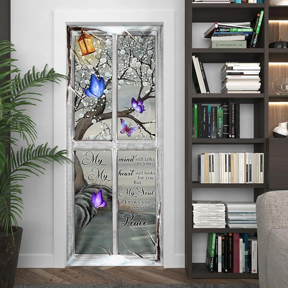 Christmas Door Cover, My Soul Knows You Are At Peace Butterfly Memory Sign Door Cover, Xmas Door Covers – Frulidays Plus A door cover is a decorative and functional home accessory. It enhances the look of a room with a variety of designs and materials. These covers provide insulation, privacy, and soundproofing. Easy to install and maintain, door covers are a versatile and stylish addition to any home.
