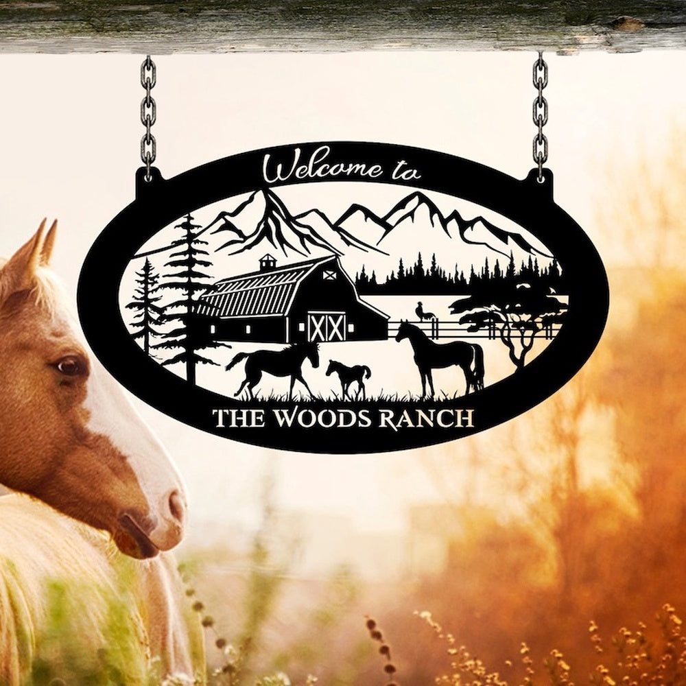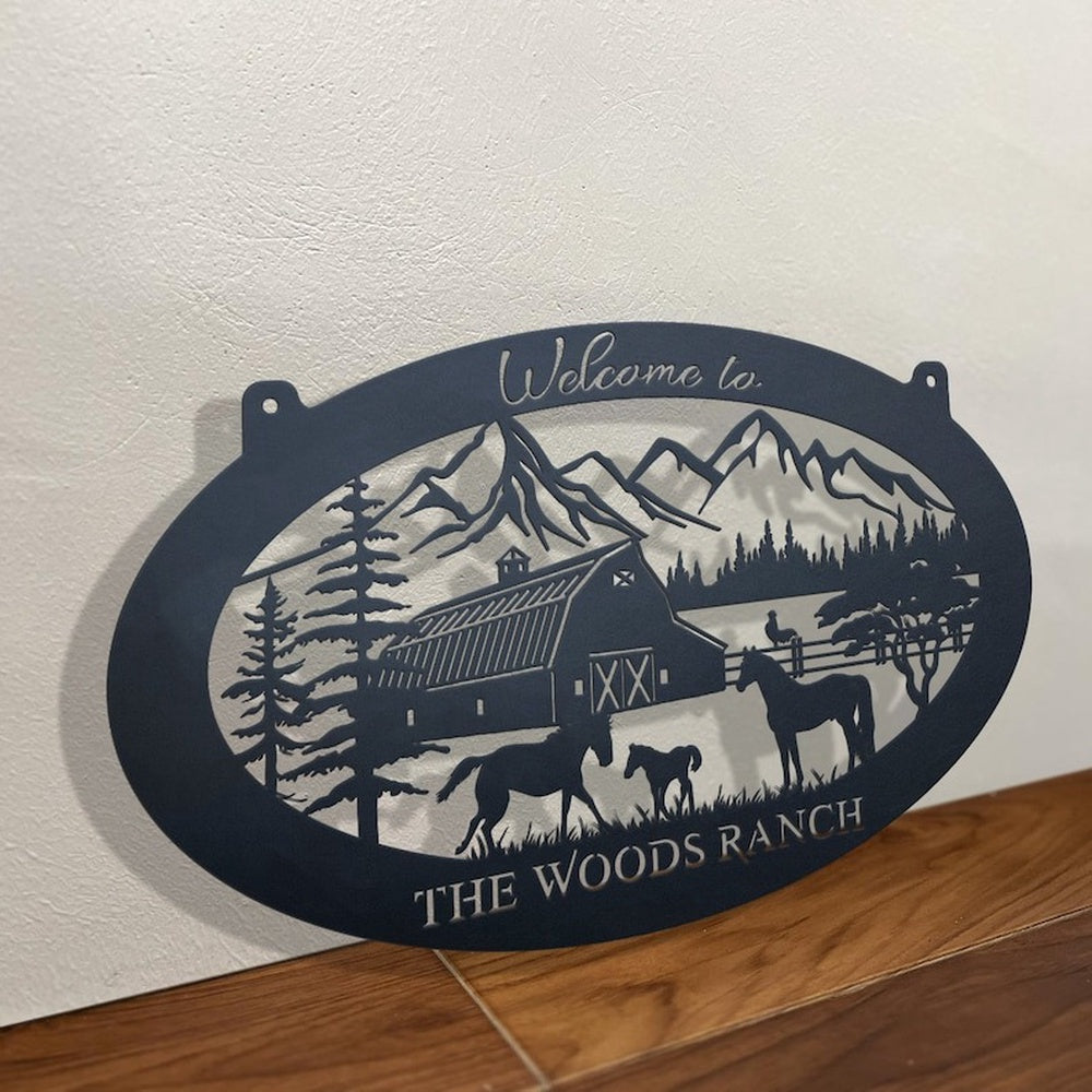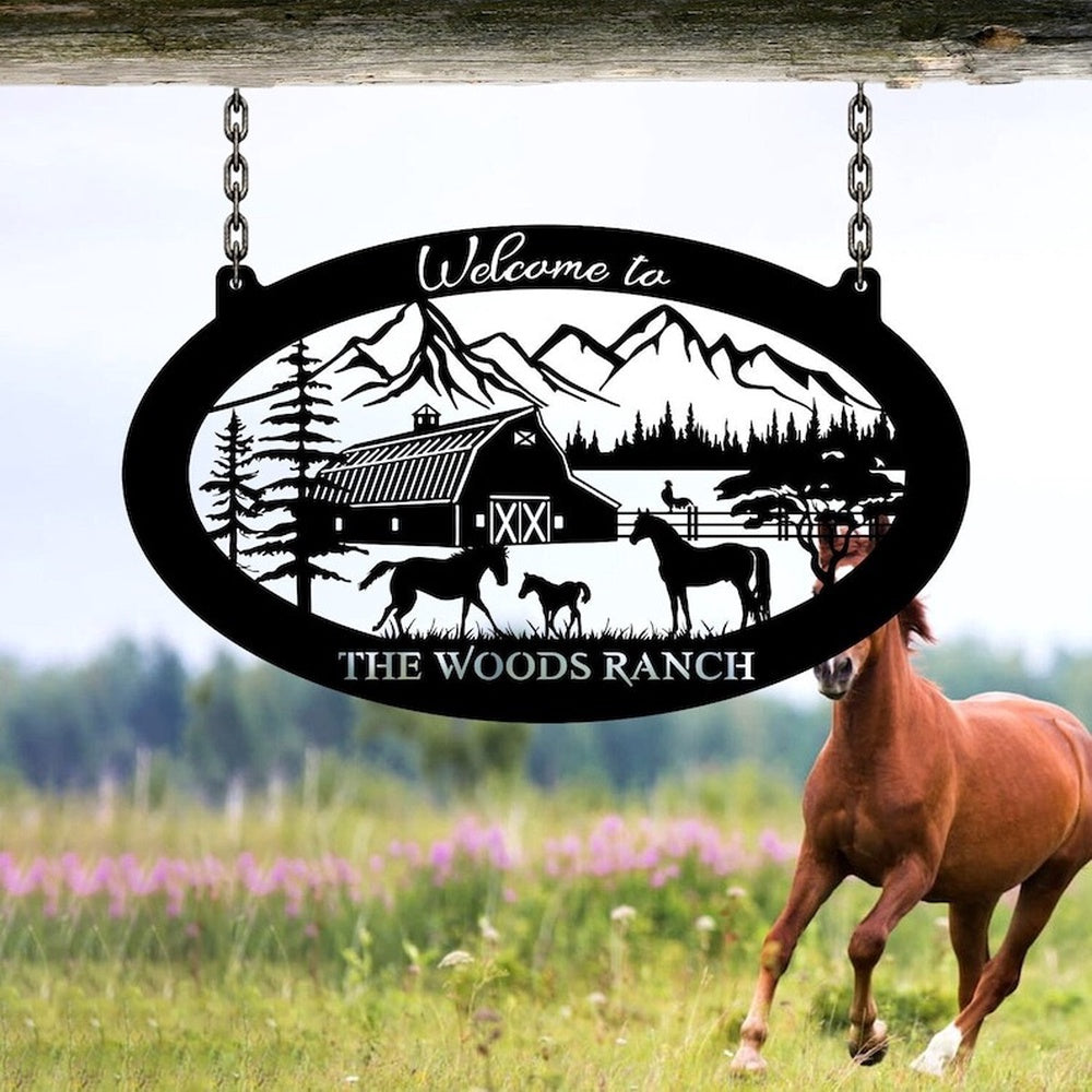 Farm Metal Sign, Farmhouse Mountain Barn Horse Chicken Farm Land Custom Metal Signs