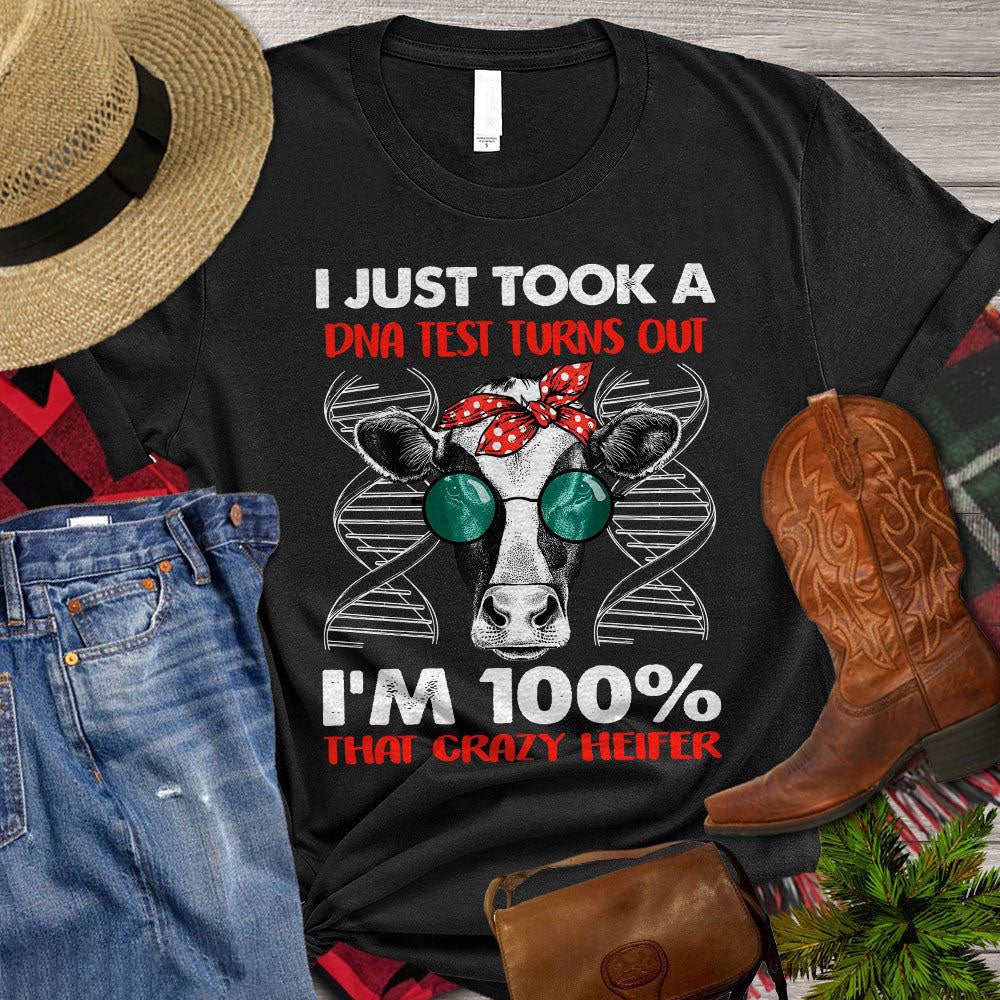 Farm T Shirt, I Just Took A DNA Test Turns Out I'm Crazy Heifer T Shirt, Farm Shirts, Funny Farm Shirts