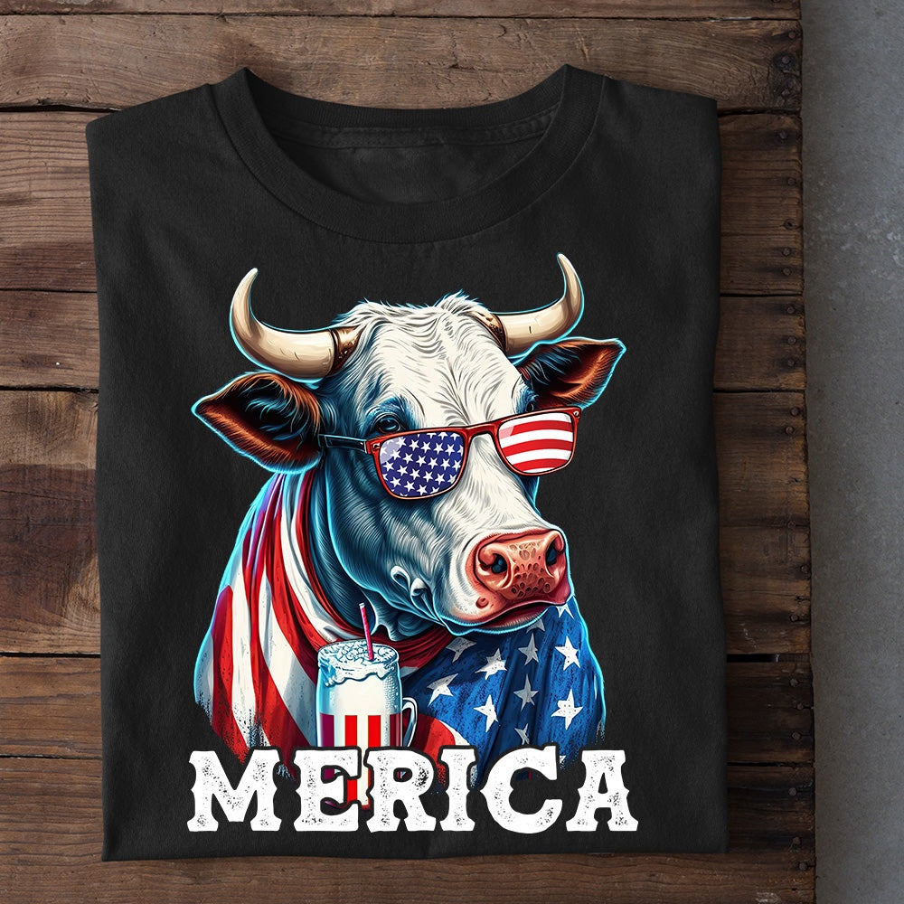 Farm T Shirt, July 4th Cow T-shirt, Merica T Shirt, Farm Shirts, Funny Farm Shirts