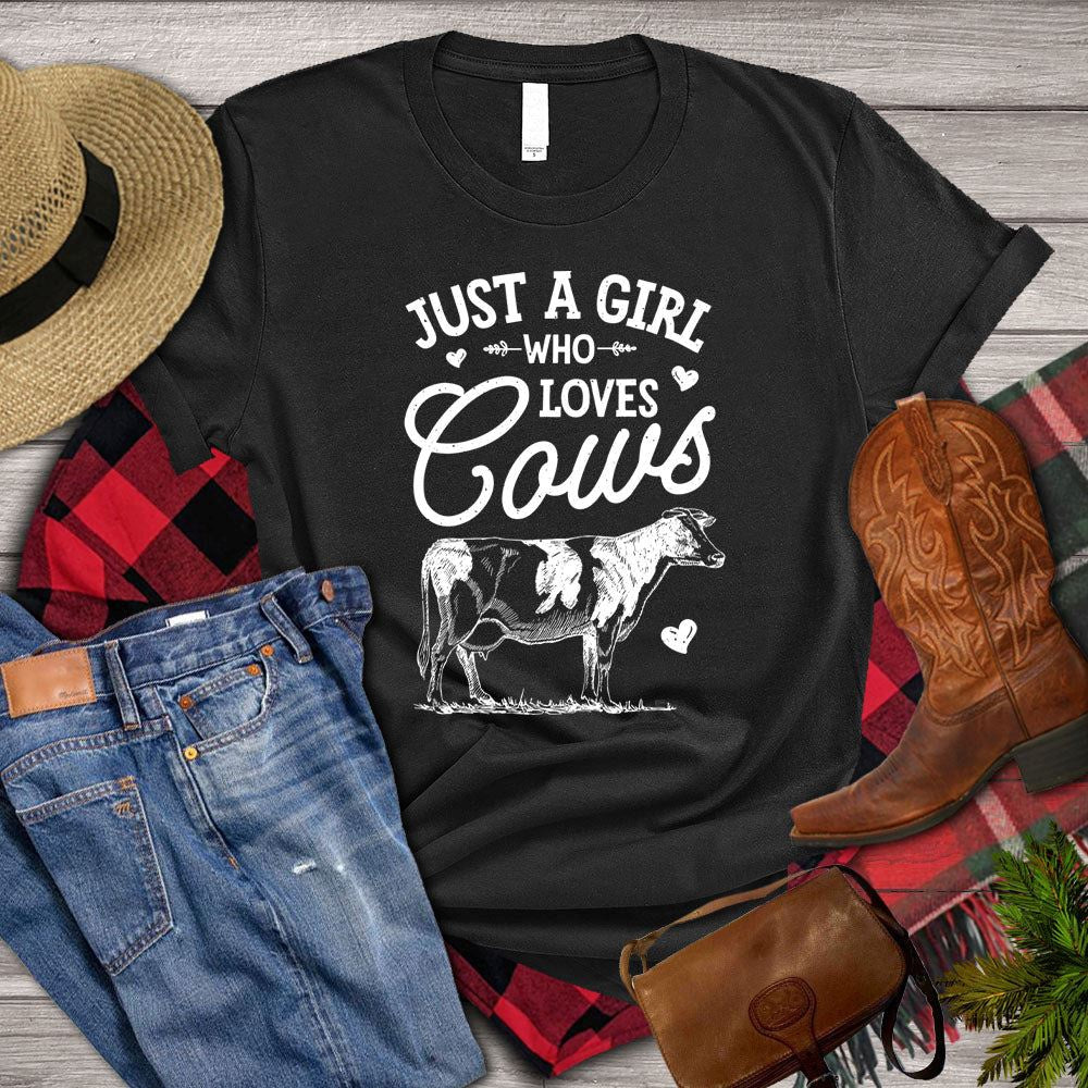 Farm T Shirt, Just A Girl Who Loves Cows T Shirt, Farm Shirts, Funny Farm Shirts