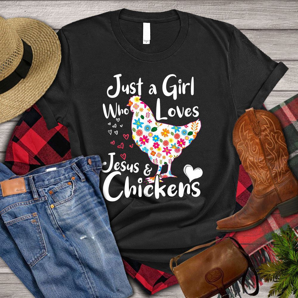 Farm T Shirt, Just A Girl Who Loves Jesus And Chickens T Shirt, Farm Shirts, Funny Farm Shirts