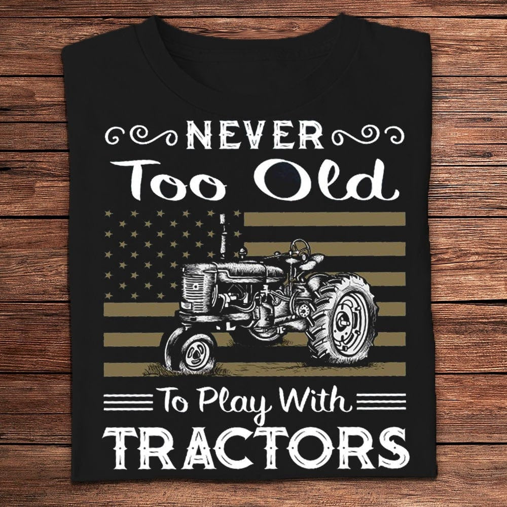Farm T Shirt, Never Too Old To Play With Tractors Farmer T Shirts, Farm Shirts, Funny Farm Shirts