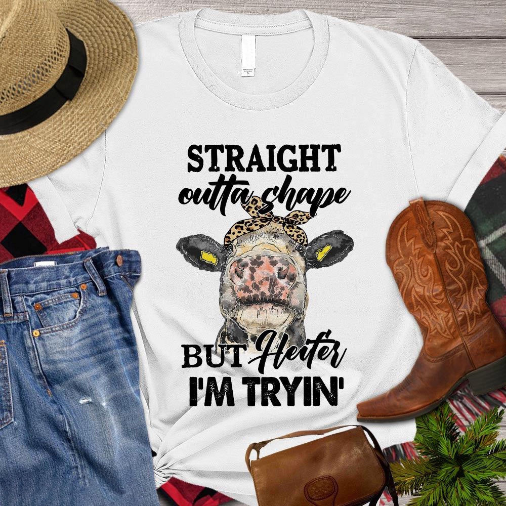 Farm T Shirt, Straight Outta Shape But Heifer I'm Tryin Gift For Cow Lovers T Shirt, Farm Shirts, Funny Farm Shirts