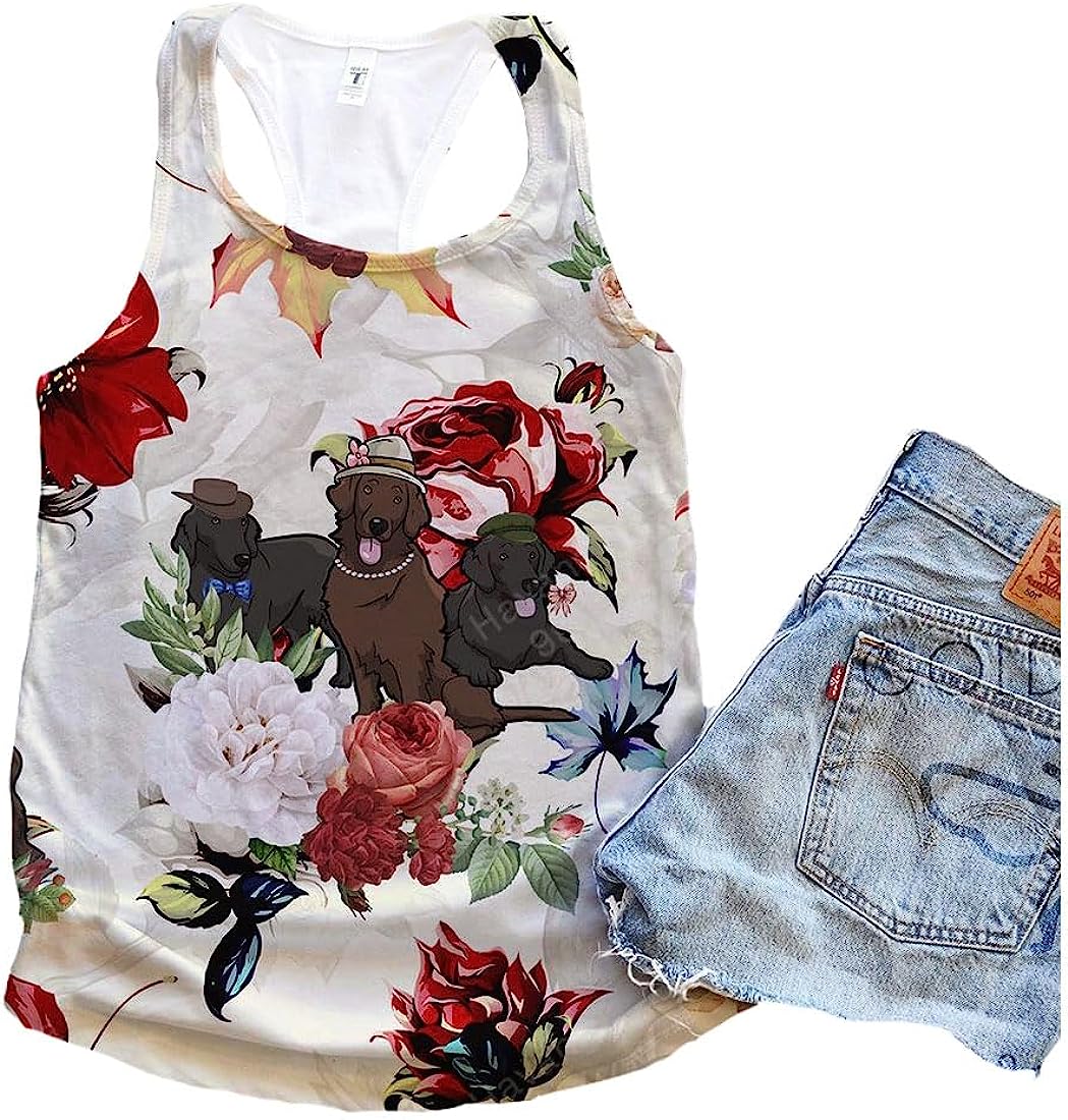 Flat Coated Retriever Dog Flower Autumn Tank Top - Summer Casual Tank Tops For Women - Gift For Young Adults