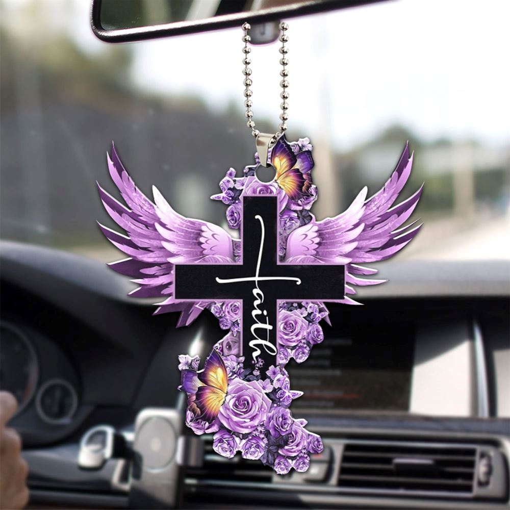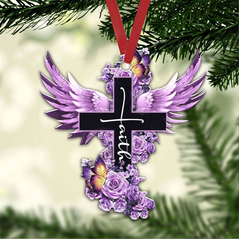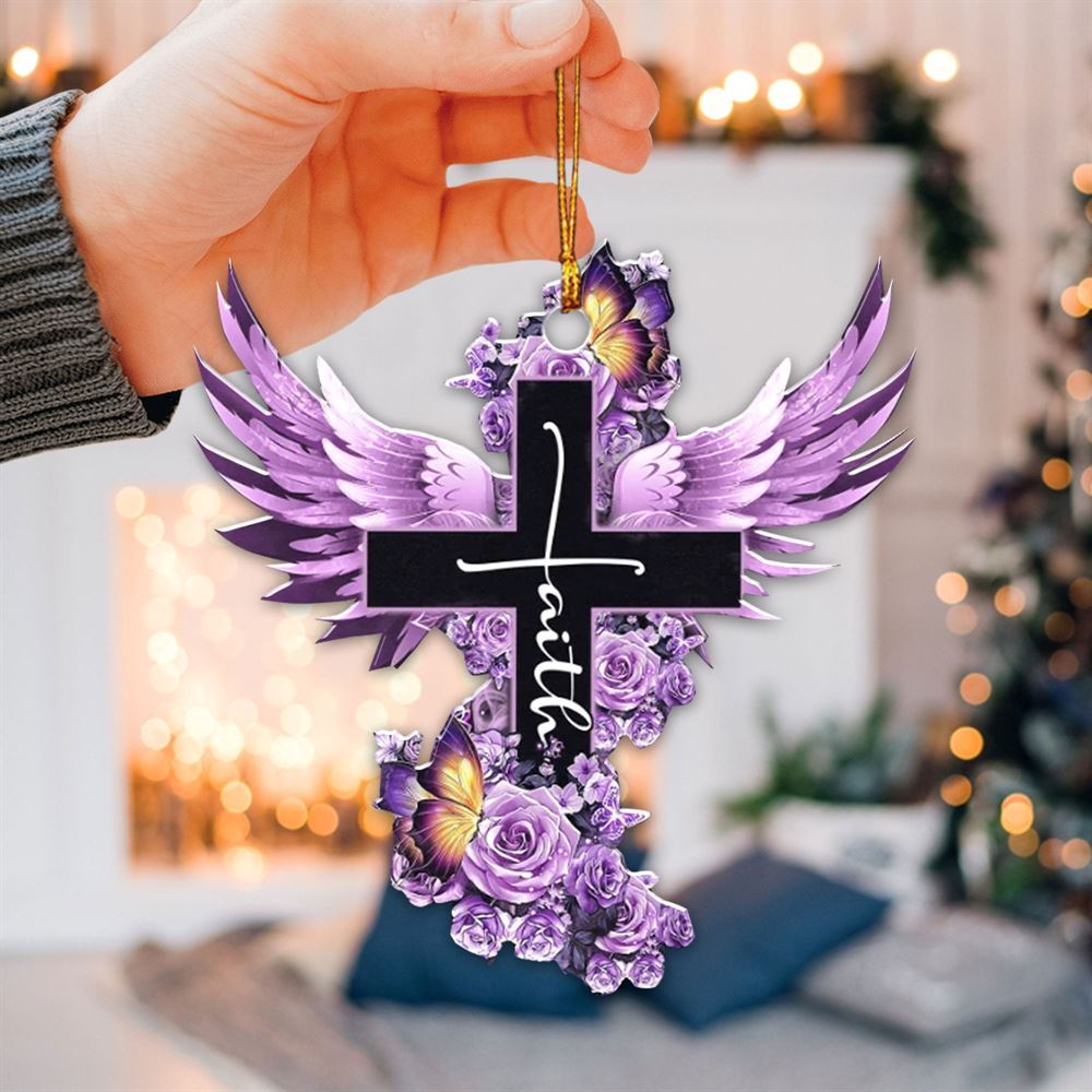 Flat Purple Cross Wing God Faith Rose Rosy Butterfly Christian Memorial Jesus Christmas Ornament, Christmas Ornaments 2023
