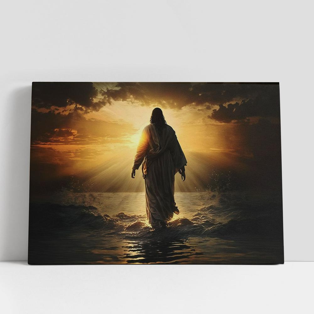 Jesus Christ Walking Water Sunset Canvas Pictures, Faith Art, Christian Gifts Canvas Wall Art Decor