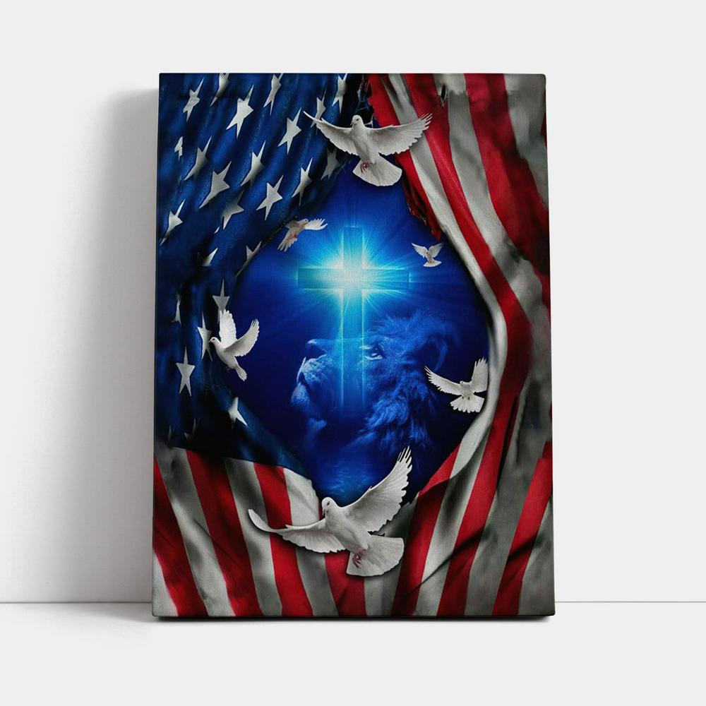 Jesus Lion American Flag Of Faith Canvas Prints - Bible Verse Wall Decor - Jesus Wall Art Home Decor