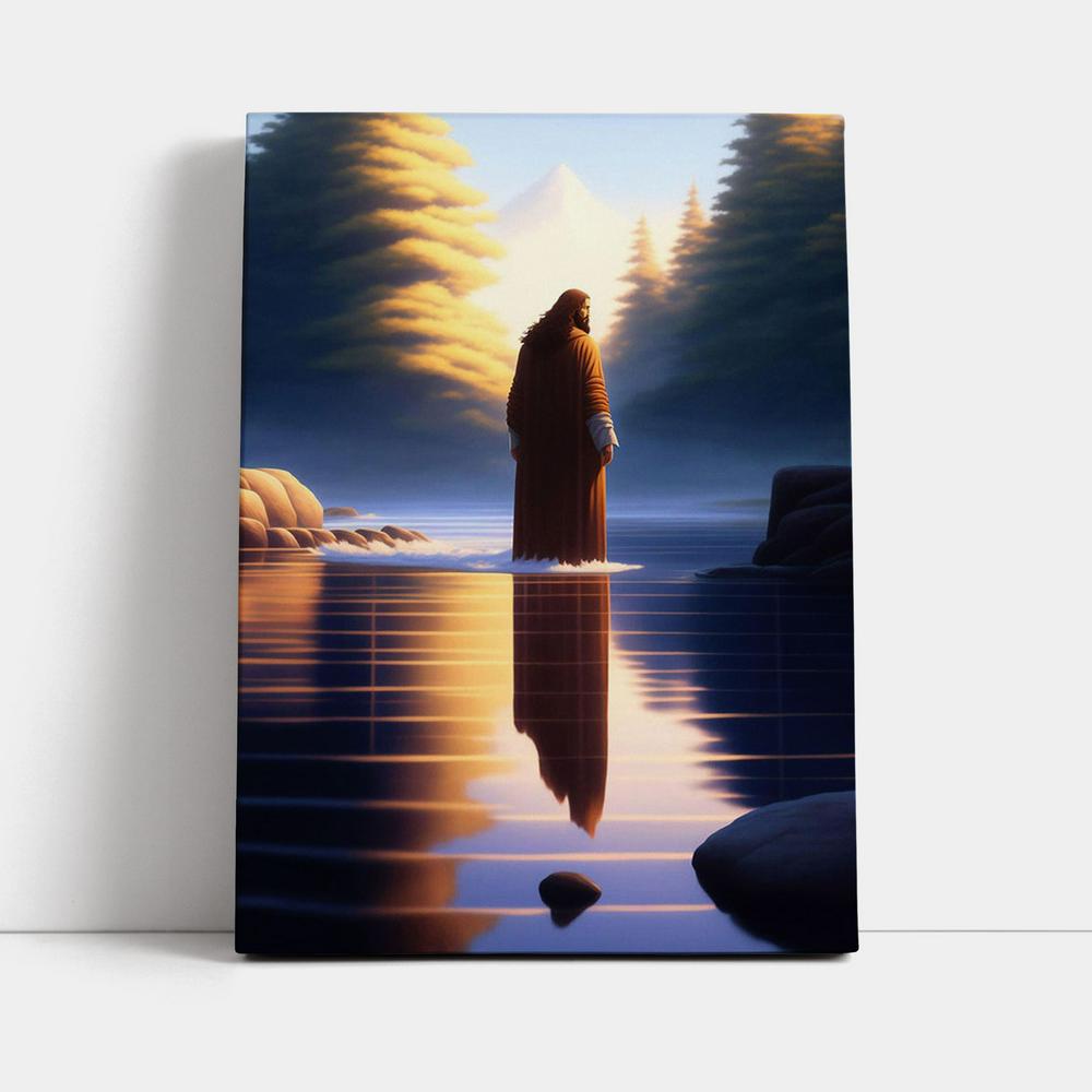 Jesus Standing On Water With Sun Shining Him Canvas Prints - Religious Canvas Art - Christian Wall Decor, is proudly made in the USA.