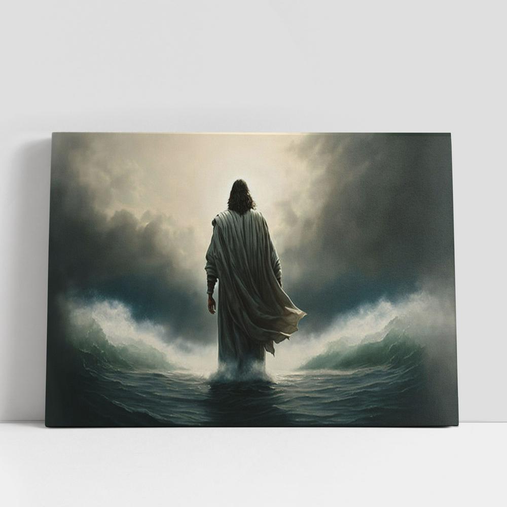 Jesus Walking Water Canvas Art, Jesus Christ Picture, Christian Gifts Home Decor