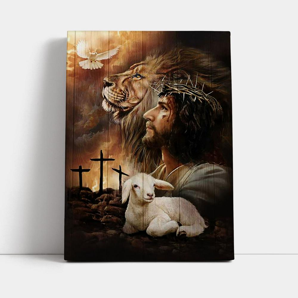 Jeus Lion Of Judah Lamb Of God Dove Of Peace Wall Art Canvas - Jesus Portrait Canvas Prints - Christian Wall Art, is proudly made in the USA.