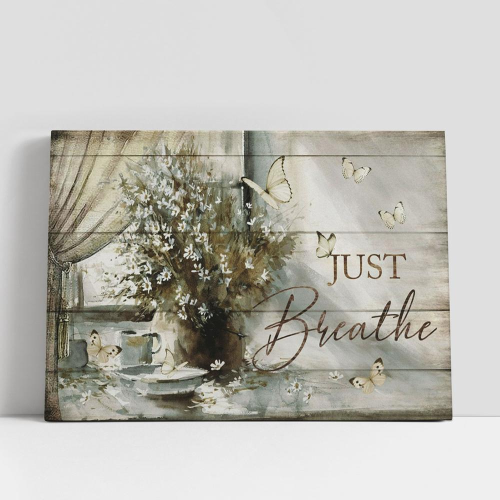 Just Breathe Flower Large Canvas, Christian Gifts Canvas Prints, Religious Canvas Art