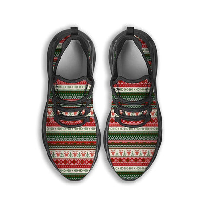 Knitted Christmas Tree Print Pattern Black Max Soul Shoes, Christmas Sneakers, Christmas Shoes, Christmas Clunky Sneaker