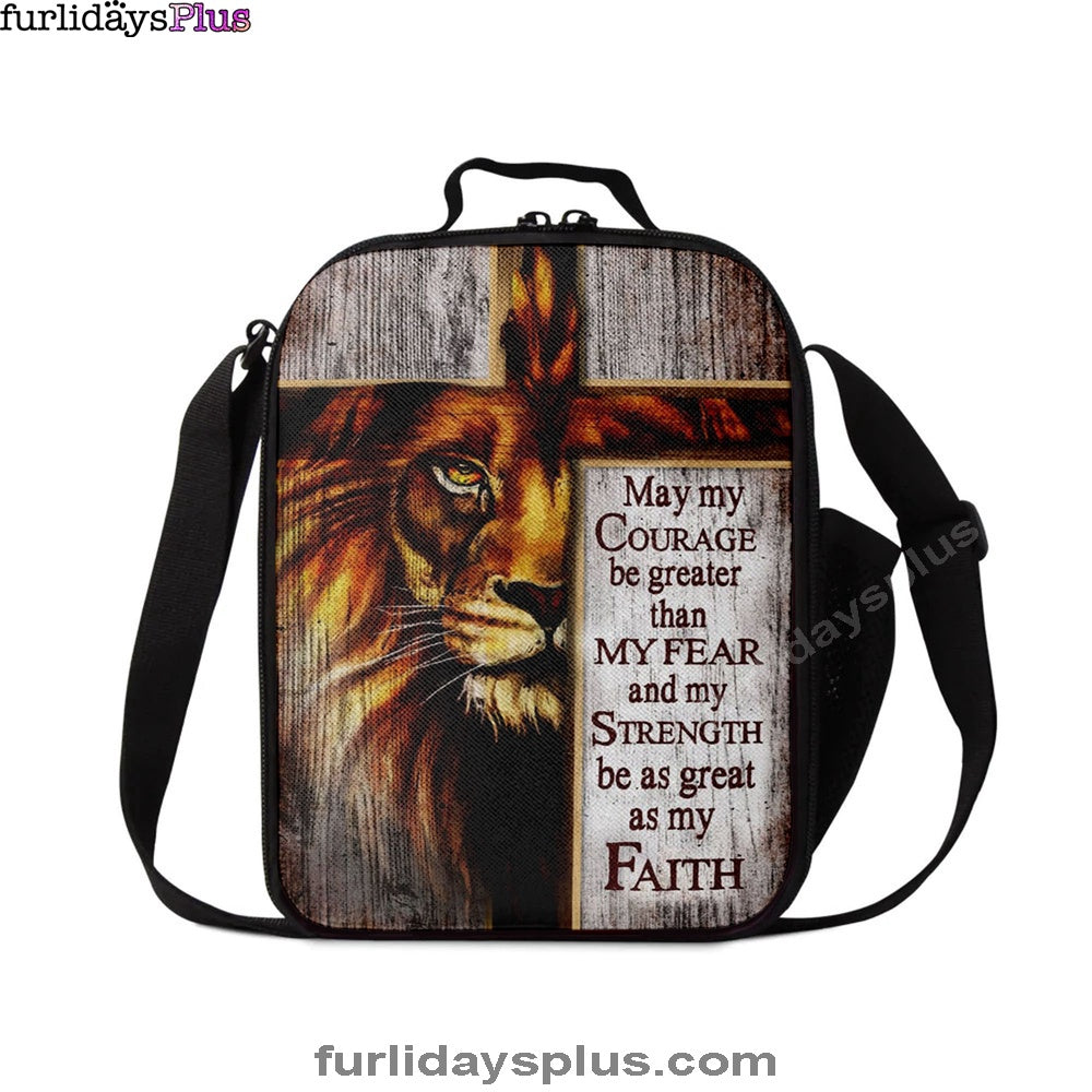 May My Courage Be Greater Than My Fear Lion Of Judah Lunchbag, Christian Lunchbag, Religious Lunch Bag