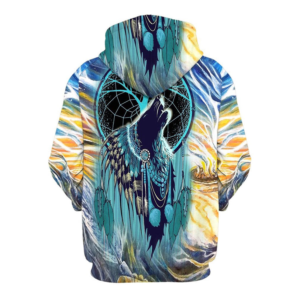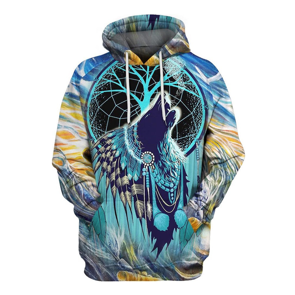 Native American Blue Wolf Dream All Over Print Hoodie, Native American Hoodie, 3D Native American Hoodie