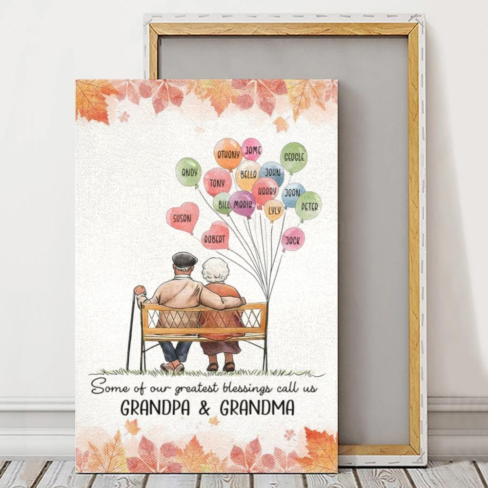 Personalized Canvas/Poster For Family - Amazing Gift - Some Of Our Greatest Blessings Call Us Grandpa & Grandma - Choose Up To 14 Grandchildren