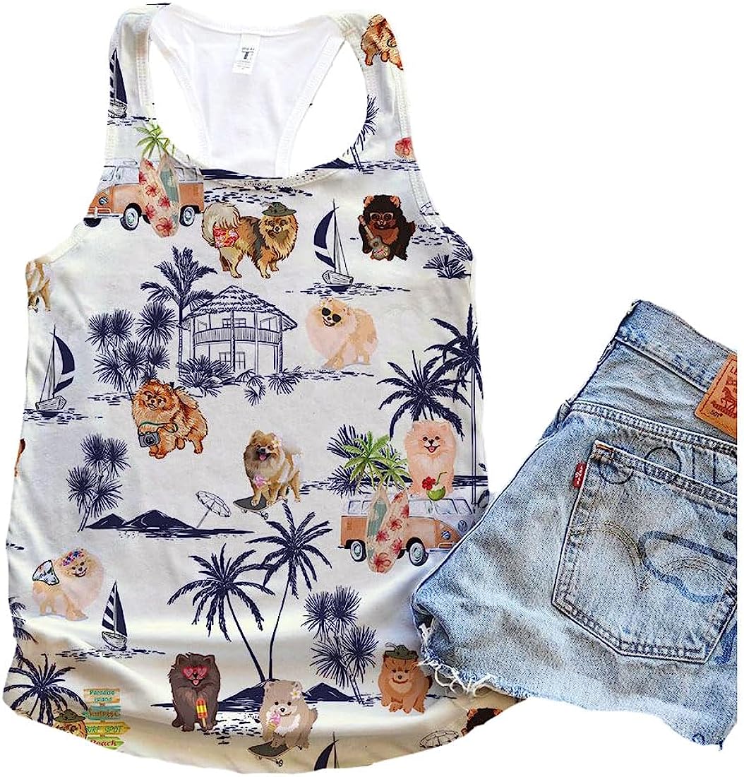 Pomeranian Dog Palm Tree Beach Simple Tank Top - Summer Casual Tank Tops For Women - Gift For Young Adults