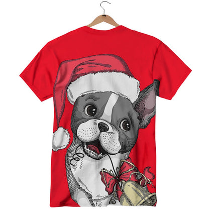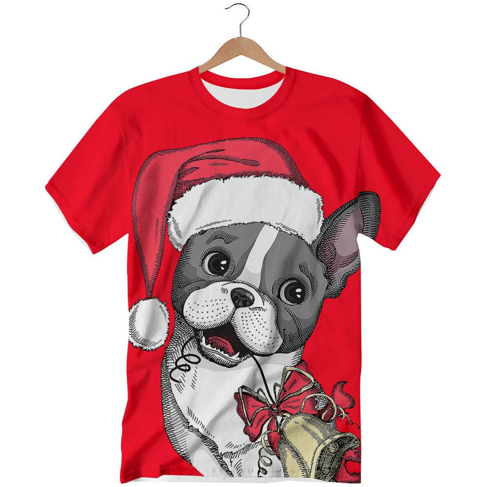 Santa Christmas French Bulldog Print All Over Print T Shirt, Christmas T Shirt, T Shirt Xmas, Christmas Themed Shirts